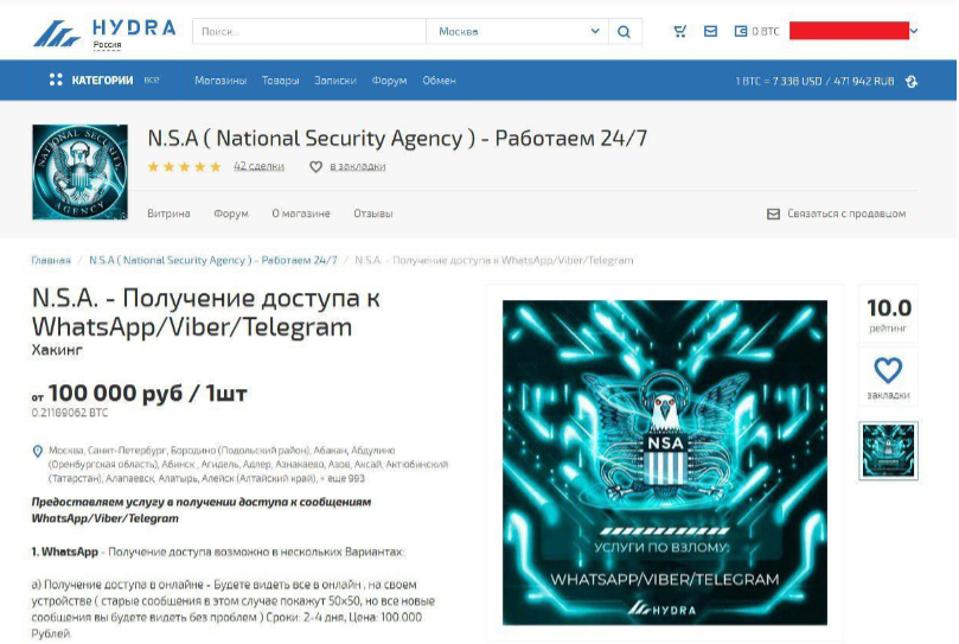 Group-IB researchers also suspect an underground trade in selling access to the likes of Telegram. On the dark Web-based Hydra forum, hackers were offering full access to an account for $3,900. They also claimed to be able to access WhatsApp messages and user info for between $1,550 and $5,450 per account.